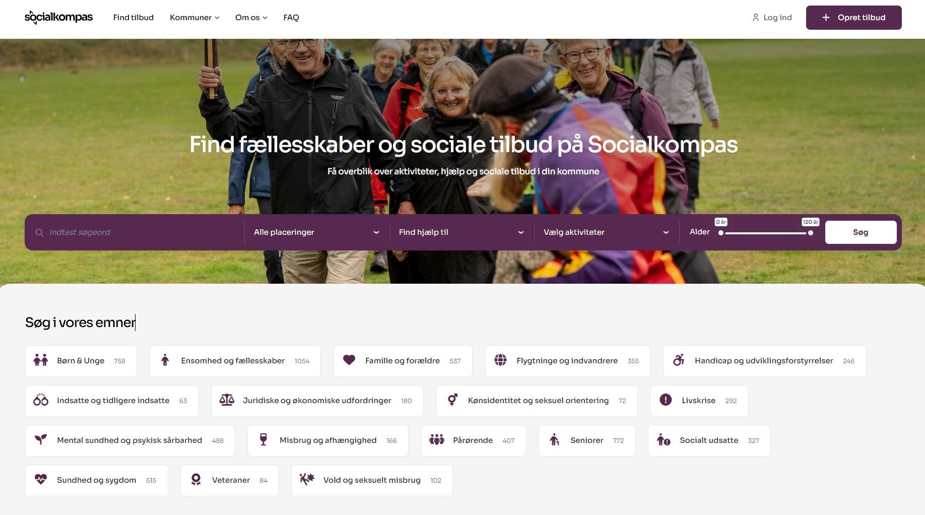 Socialkompas er en smart søgemaskine, hvor borgere og pårørende nemt kan finde hjælp til deres aktuelle livssituation. Den er tilgængelig for alle: borgere, foreninger, institutioner, organisationer og kommunen.