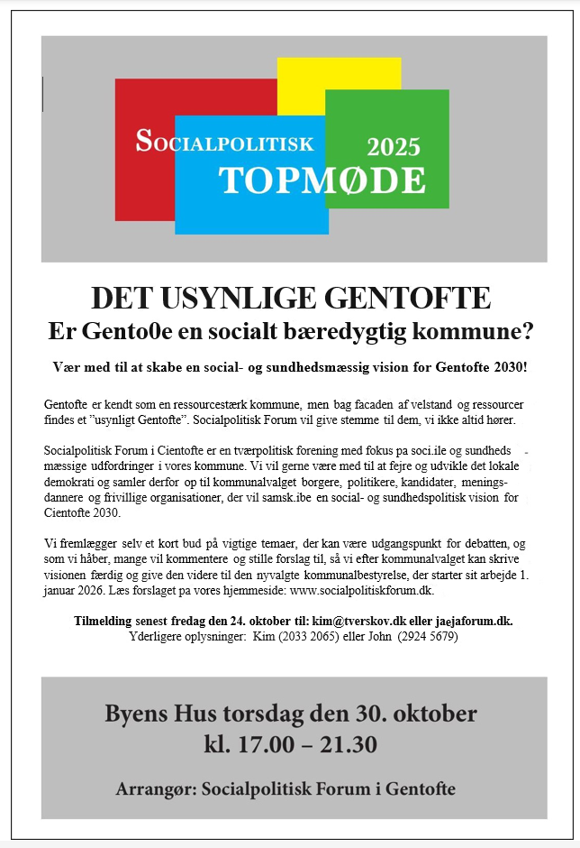 Husk også, at vi i denne uge er på Rådhusdage i Gentofte Kommune, kig endelig forbi vores stand, hvis I er i nærheden! Rådhusdagene byder på programmer med spændende foredragsholdere, musik og en præsentation af kommunens mange tilbud! | |